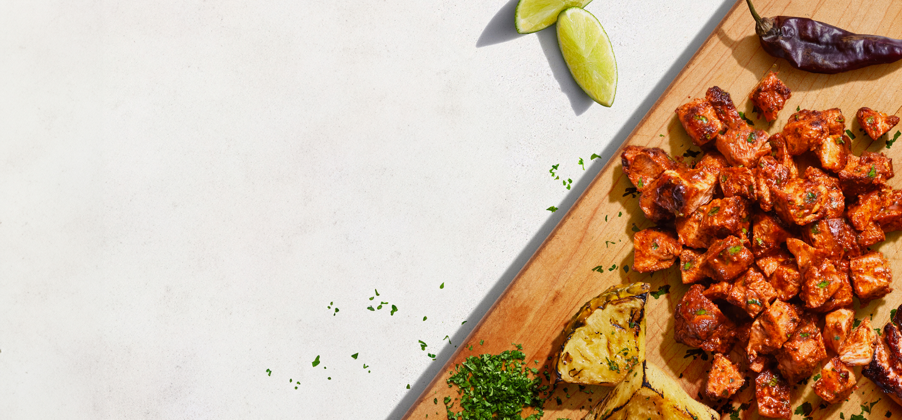 Chipotle’s Chicken al Pastor marinade is made with seared morita peppers and ground achiote peppers. We then add a splash of pineapple, fresh lime, and hand-chopped cilantro to bring this bold chicken recipe and Chicken al Pastor tacos recipe to life.